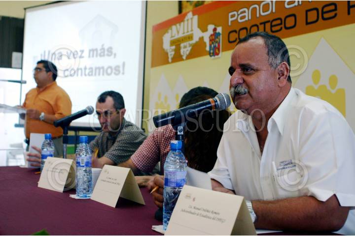 VILLAHERMOSA, TABASCO,07JULIO2005.- Manuel Ordóñez Romero, Subdirector de Estadisticas del INEGI en rueda de prensa afectuada en la sala principal del recinto legislativo de la LVIII Camara de Diputados; funcionarios del INEGI presentaron el Panorama General de Segundo Conteo de Población y Vivienda 2005. FOTO: Marco Polo Gúzman/CUARTOSCURO.COM