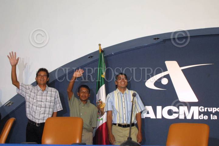 MEXICO, D.F., 25AGOSTO2006.- Los tres pescadores que naufragaron durante 9 meses, llegaron a la capital provenientes de las Islas Marshall, Lucio Rendon Becerra, Salvador Ordoñez y Jesús Eduardo Vidaña. A su llegada ofrecieron una conferencia de prensa en el Aeropuerto Internacional de la Ciudad de México. FOTO: Jerónimo Moreno/CUARTOSCURO.COM
