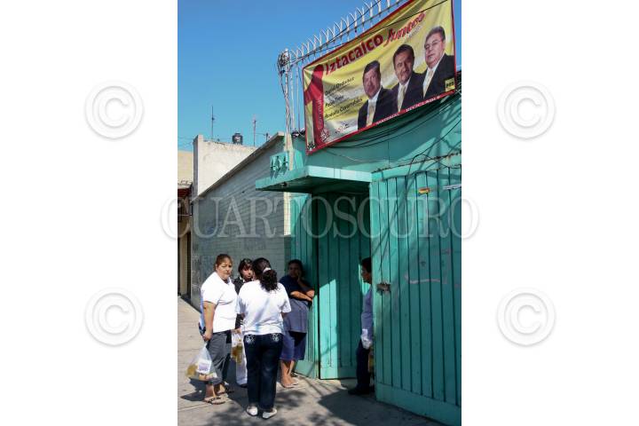 MÉXICO D.F., 15MARZO2009.- Personas recibieron despensas en la calle Vainilla #434, en la colonia Granjas México de la delegación Iztacalco. En dicho domicilio se encontraron mantas de la planilla uno, a nombre de Daniel Ordoñez, para jefe delegacional. FOTO: SAÚL LÓPEZ/CUARTOSCURO.COM