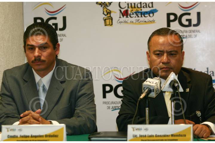 MÉXICO, D.F., 23JUNIO2009.- Felipe Angeles Ordoñez, coordinador de la Policía Judicial en Iztapalapa y José Luis Gonzalez Mendoza, fiscal desconcentrado en Iztapalapa, dieron a conocer los pormenores de la detención de Pablo Becerrril Viva de 19 años de edad acusado de asesinar a su novia a golpes y navajasos el pasado sábado en el cerro de la estrella en la delegación Iztapalapa. FOTO: SAÚL LÓPEZ/CUARTOSCURO.COM