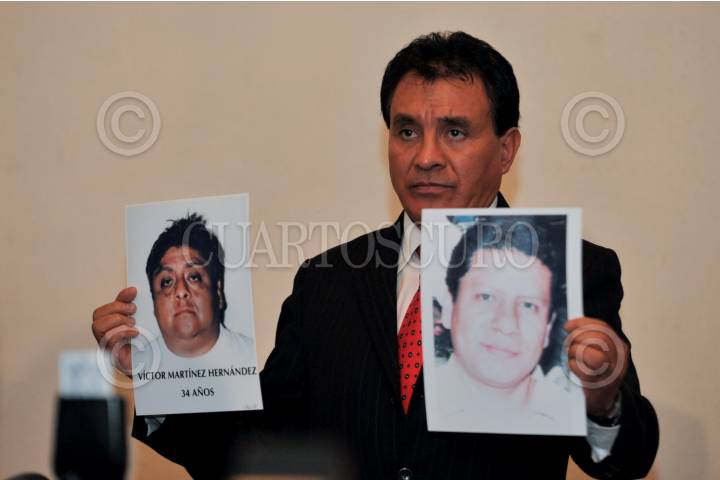 MÉXICO D.F. 30NOVIEMBRE2009.- Vicente Javier Mondragón Varela dio a conocer un carta envida a Marcelo Ebrad, jefe de Gobierno local, y a Miguel Ángel Mancera, procurador General de Justicia del Distrito Federal, donde agradece el trabajo de investigación y el de sacar de las calles a un grupo de secuestradores y asesinos, los cuales son responsables del secuestro y asesinato de su hijo; asimismo hizo mención del deceso de Alejandro González Ordóñez, alias “El Jaibo” el cual encabezaba este grupo delictivo.En la imagen muestra la foto de uno de los plagiarios y la de su hijo. FOTO: GUILLERMO PEREA/CUARTOSCURO.COM