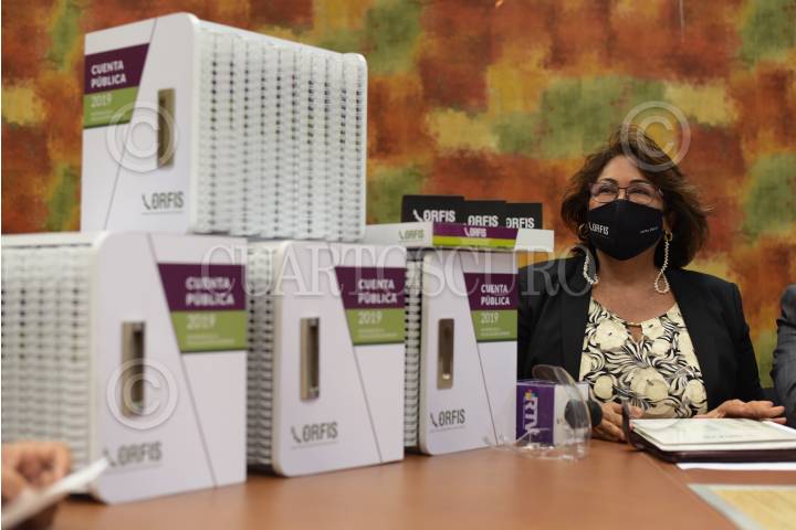 Delia González Cobos, titular de la ORFIS, durante la entrega de la Cuenta Pública 2020.