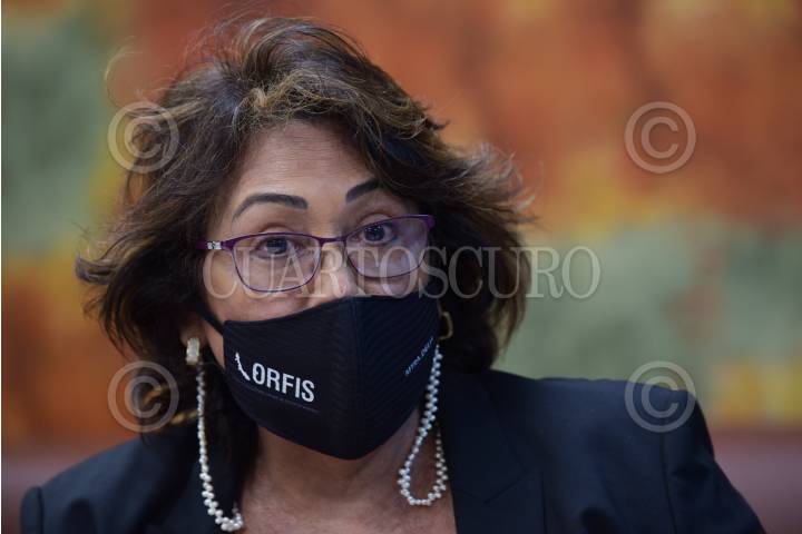 La titular del ORFIS, Delia González, durante la entrega de los documentos.