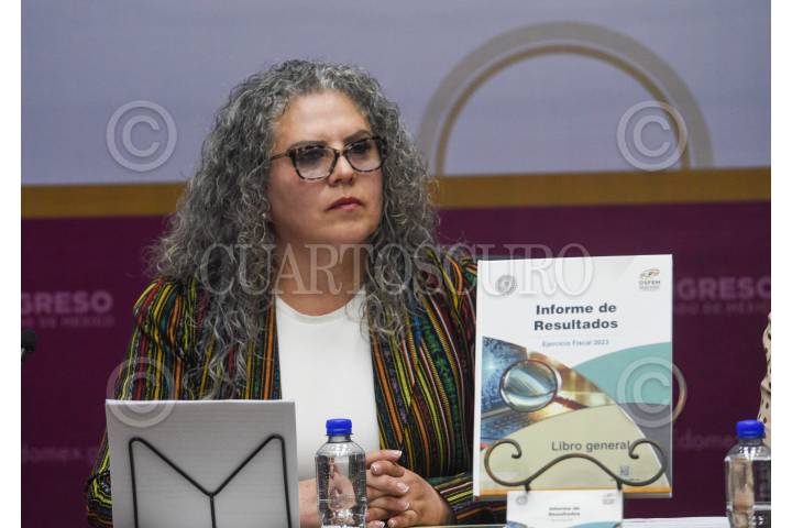 TOLUCA, ESTADO DE MÉXICO, 30ABRIL2025.- Liliana Dávalos Ham, titular del Órgano Superior de Fiscalización del Estado de México durante la entrega de Óscar Flores Jiménez, Secretario de Finanzas del Estado de México de la Cuenta Pública del Gobierno, Organismos Auxiliares y Autónomos del Estado de México 2024 a integrantes de la LXII Legislatura Local. FOTO: CRISANTA ESPINOSA AGUILAR /CUARTOSCURO.COM