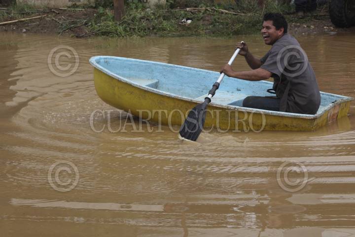 TLALIXTAC DE CABRERA, OAXACA, 24SEPTIEMBRE2013.- Debido a las intensas lluvias de los últimos días la carretera federal 190 Oaxaca-Istmo se encuentra cerrada en un tramo cercano a los 200 metros que va de Tlalixtac de Cabrera a Santa María el Tule, el carril afectado que es el que va del Tule hacia la ciudad de Oaxaca en el que se encuentra almacenada una gran cantidad de agua, lodo y pedazos de árbol, en uno de los talleres mecánicos que se ubican en el lugar usan para poder transportarse una cuatrimoto y una pequeña balsa. FOTO: ARTURO PÉREZ ALFONSO /CUARTOSCURO.COM