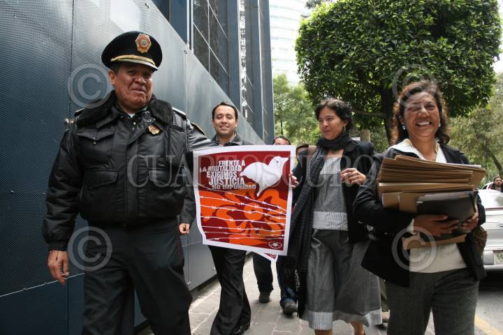 MÉXICO D.F., 21VOVIEMBRE2008.- Integrantes de la organización 25 de Noviembre acudieron esta mañana a las instalaciones de la PRG, donde interpusieron una demanda por abuso de autoridad y violación de sus derechos en contra de elementos de seguridad de distintos cuerpos policíacos del estado de Oaxaca. FOTO: GUILLERMO PEREA/CUARTOSCURO.COM