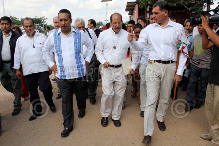 CD. IXTEPEC, OAXACA, 20MAYO2011.- José Francisco Blake Mora, secretario de Gobernación, Alejandro Solalinde Guerra coordinador de la Casa del Migrante "Hermanos en el Camino", y Gabino Cué Monteagudo, gobernador del estado de Oaxaca. Durante la visita del encargado de la política interna a Ciudad Ixtepec Oaxaca, donde visitó el albergue de migrantes. FOTO: ARTURO PÉREZ ALFONSO/CUARTOSCURO.COM