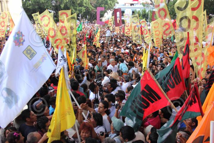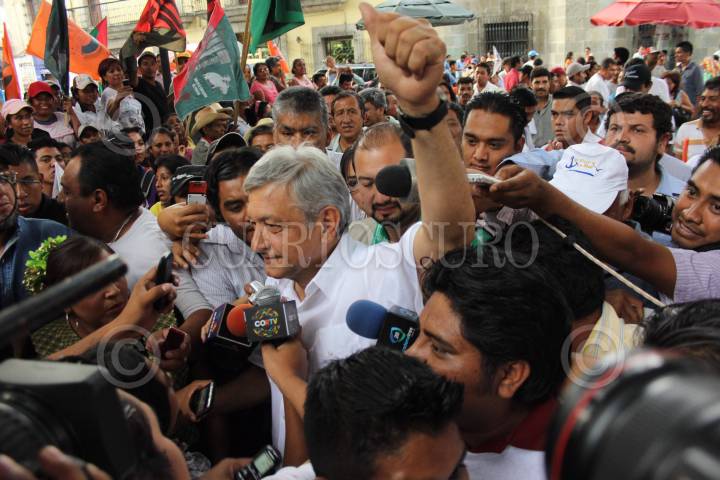OAXACA, OAXACA, 04JUNIO2011.- Andrés Manuel López Obrador, realizó un mitin ante miles de seguidores y afiliados a su Movimiento de Renovación Nacional, que se llevó a cabo en la Alameda de León, en el Centro Histórico de la ciudad. FOTO: ARTURO PÉREZ ALFONSO/CUARTOSCURO.COM