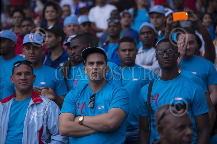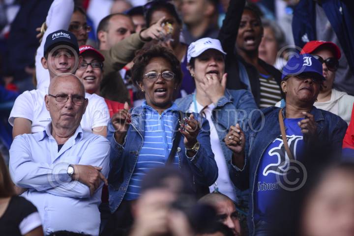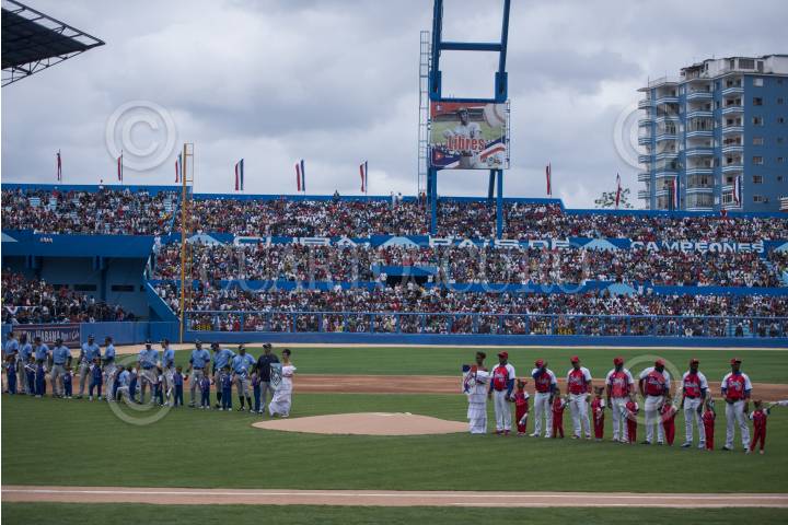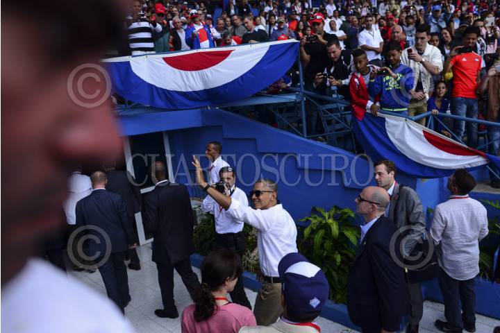 LA HABANA, CUBA, 22MARZO2016.- La selección de béisbol de Cuba se enfrentó a las Rays de Tampa Bay, en el Estadio Latinoamericano, como parte de las actividades de restablecimiento de las relaciones diplomáticas entre los Estados Unidos y la isla caribeña y al cual asistió Barack Obama y Raúl Castro, presidentes de cada país, respectivamente. FOTO: ADOLFO VLADIMIR /CUARTOSCURO.COM