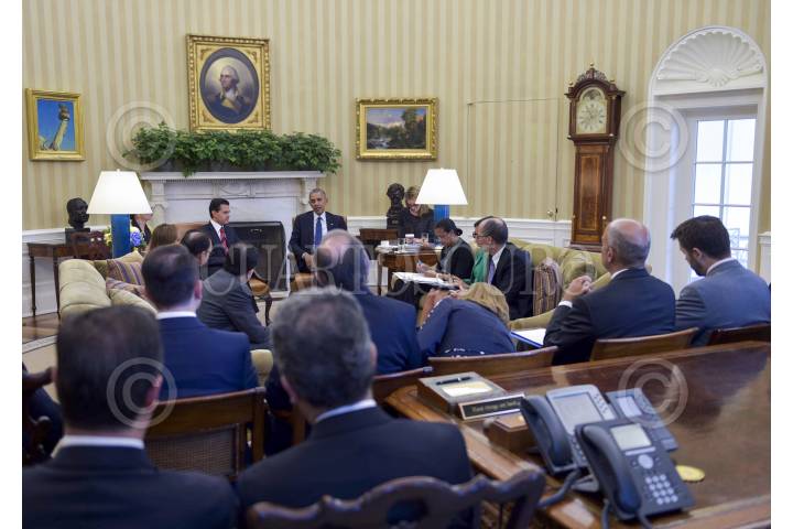 WASHINGTON D.C., ESTADOS UNIDOS, 22JULIO2016.- El presidente de México, Enrique Peña Nieto, se reunió con su homólogo de los Estados Unidos de América, Barack Obama. Durante el encuentro, celebrado en la Oficina Oval de la Casa Blanca, ambos dialogaron acerca de diversos temas de la relación bilateral. FOTO: PRESIDENCIA /CUARTOSCURO.COM