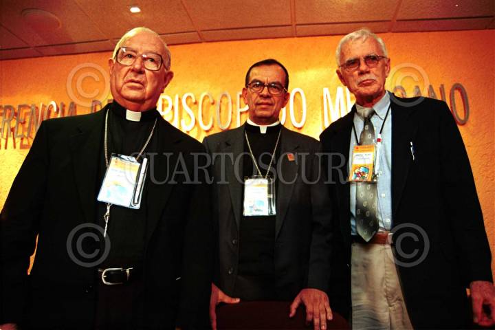 Sergio Obeso, Gregorio Rosa y Walter Blake, durante la conferencia que la organización Cáritas ofreció esta tarde con motivo de la inaguración del XV Congreso Latinoamericano y Caribeño de Cáritas que se llevará a cabo el día de mañana en la Confederación del Episcopado Mexicano. FOTO:/CUARTOSCURO.COM