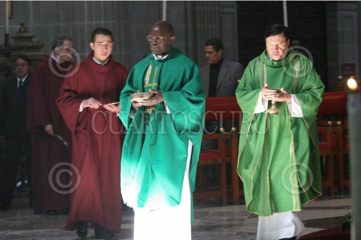 MÉXICO D.F. 16ENERO2011.- El Cardenal, Norberto Rivera Carrera, acompañado de Obispos de la Republica de Haití, oficio la homilía dominical en la Catedral Metropolitana. FOTO: GUILLERMO PEREA/CUARTOSCURO.COM