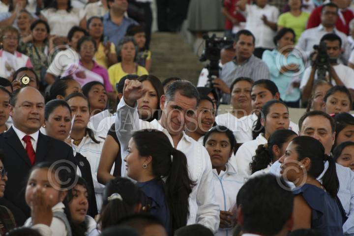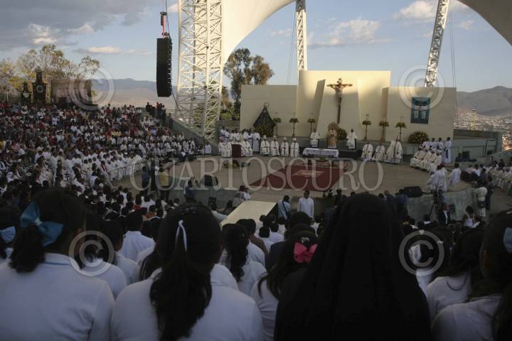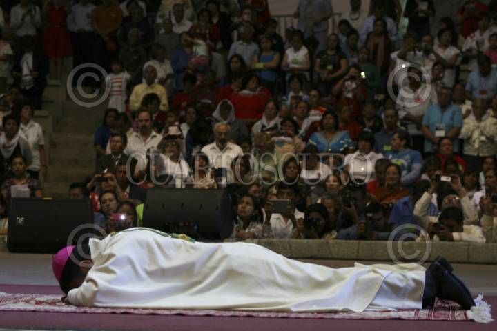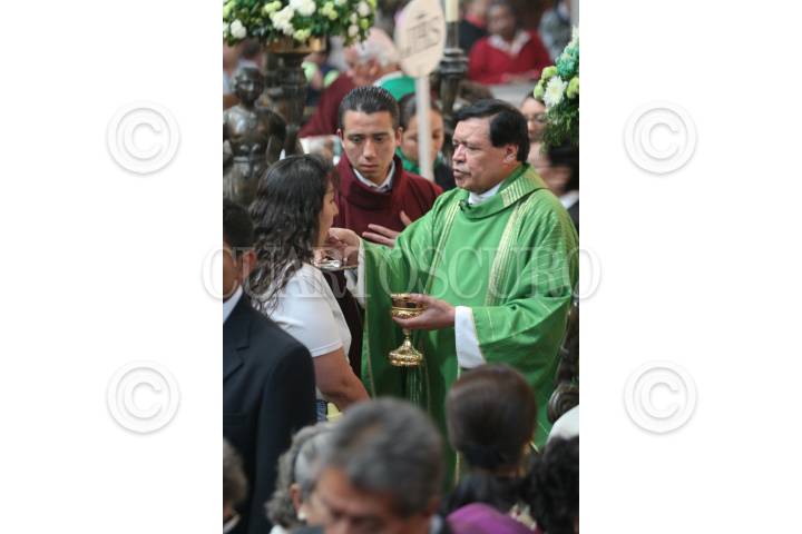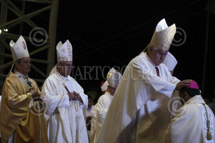 OAXACA, OAXACA, 05FEBRERO2013.- Fue ordenado el obispo Auxiliar de la Diócesis de Antequera Gonzalo Alonso, procedente del seminario de Celaya. La ceremonia ecleciástica se llevó a cabo en el Auditorio Guelaguetza y fue presidida por el arzobispo de Antequera, José Luis Chávez Botello quien estuvo acompañado del nuncio Apostólico en México, Christophe Pierre. La celebración tuvo una duración aproximada de 3 horas 30 minutos y estuvo presente el gobernador del Estado, Gabino Cúe Monteagudo acompañado de diversos funcionarios de su gabinete. FOTO: ARTURO PÉREZ ALFONSO/CUARTOSCURO.COM