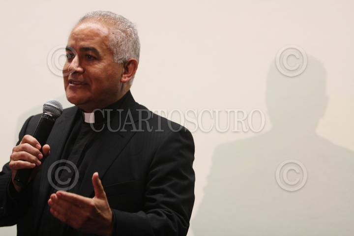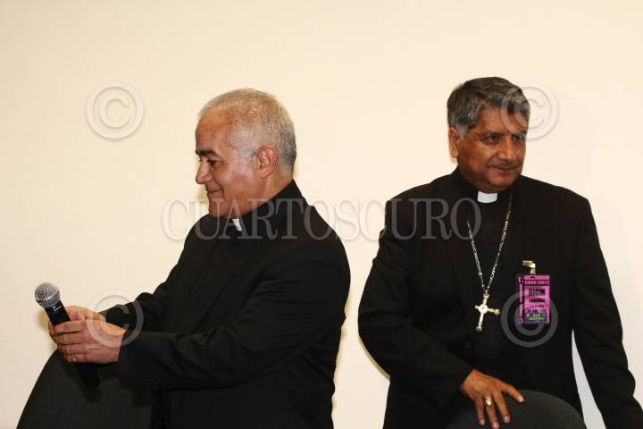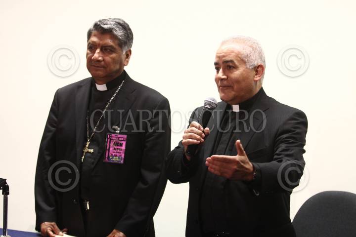 MÉXICO, D.F., 17AGOSTO2011.- Víctor Rene Rodríguez Gómez, obispo auxiliar de Texcoco y secretario general de la CEM junto con Manuel Corral, secretario técnico de la CEM, anunciaron la llegada de las reliquias del Beato Juan Pablo II a México. FOTO: SAÚL LÓPEZ/CUARTOSCURO.COM