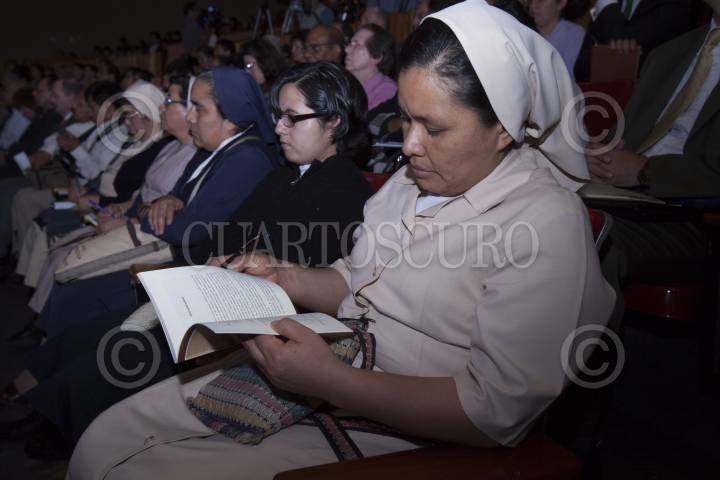MÉXICO, D.F 11SEPTIEMBRE2012.-Mujeres religiosas leen el documento “Educar para una nueva sociedad” en donde se destaca que los contenidos de programas educativos y libros de texto puedan reflejar “no una ideología parcial y tendenciosa sino una verdadera propuesta educativa" en el foro del mismo nombre , en el que Carlos Aguiar Retes, arzobispo de Tlalnepantla y presidente de esta conferencia, y Alfonso Cortés, obispo de Cuernavaca y presidente de la Dimensión Pastoral Educativa, se pronunciaron por una reforma educativa "urgente" y en donde la labor del “sindicato” ha propiciado corrupción y malos manejos en el sistema educativo. FOTO: JUAN PABLO ZAMORA /CUARTOSCURO.COM