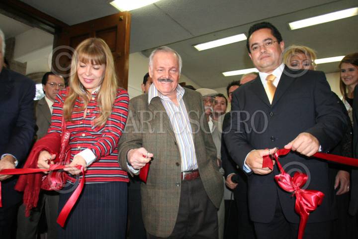 MÈXICO, D.F., 16JULIO2008.- A sus 74 años de edad, el pintor, Jose Luis Cuevas, recibio un reconocimiento por sus obras en la delegaciòn de Alvaro Obregon, acompañado por su esposa, Beatriz del Carmen Cuevas y Leonel Luna Etrada, jefe delegacional.. FOTO: CUARTOSCURO.COM