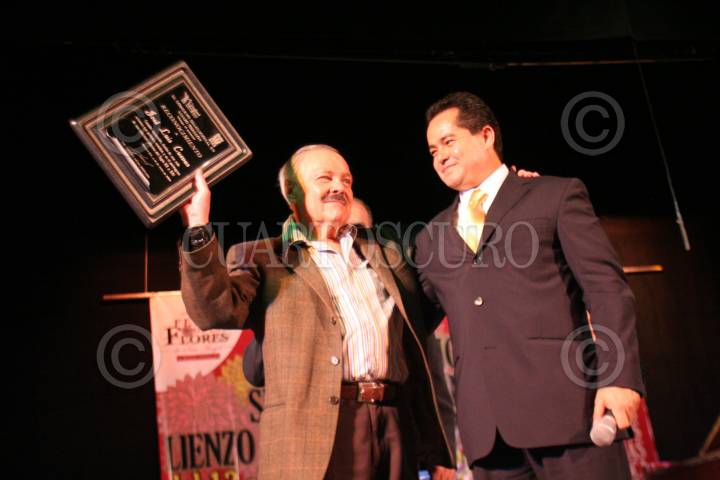 MÈXICO, D.F., 16JULIO2008.- El pintor, Jose Luis Cuevas recibio un reconocimiento por sus obras en la delegaciòn Alvaro Obregòn donde lo acompaño, Leonel Luna Estrada, jefe delegacional. FOTO: CUARTOSCURO.COM