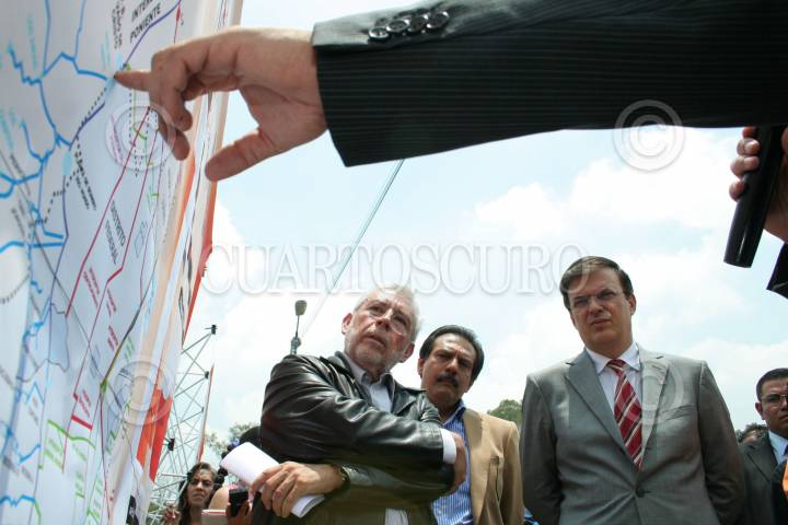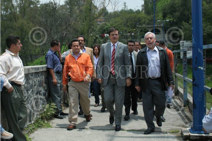MÉXICO, D.F. 19JULIO2007.- El jefe de gobierno capìtalino, Marcelo Ebrard Casaubón, Miguel Moreno Brizuela, secretario de Protección Civil y Jorge Arganis, secretario de Obras y servicios del GDF durante su visita a la Presa Mixcoac. FOTO: PAOLA HIDALGO/CUARTOSCURO.COM