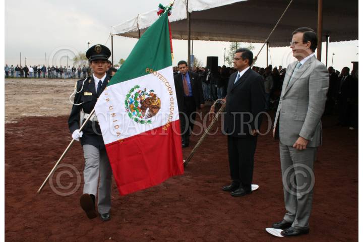 MÉXICO. D.F. 11SEPTIEMBRE2007.- Joel Ortega Cuevas, titular de la SSPDF, Marcelo Ebrard Casaubón, jefe de gobierno del Distrito Federal y Leonel Luna Estrada jefe delegacional en Álvaro Obregon, pusieron en marcha la 30/a unidad de protección ciudadana, la cual esta compuesta por 400 policias que vigilarán la zona de Santa Fe en la delegación Álbaro Obregón. FOTO:RICARDO CASTELAN/CUARTOSCURO.COM