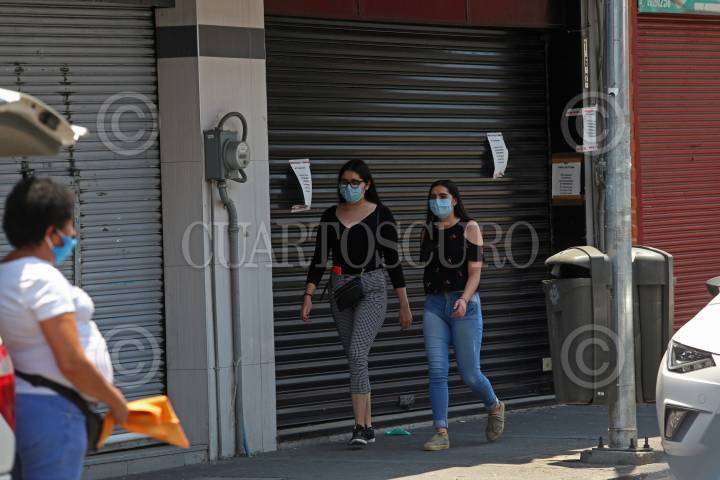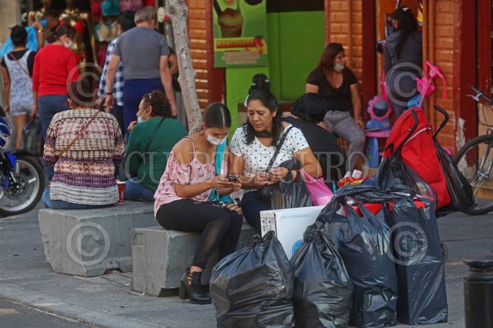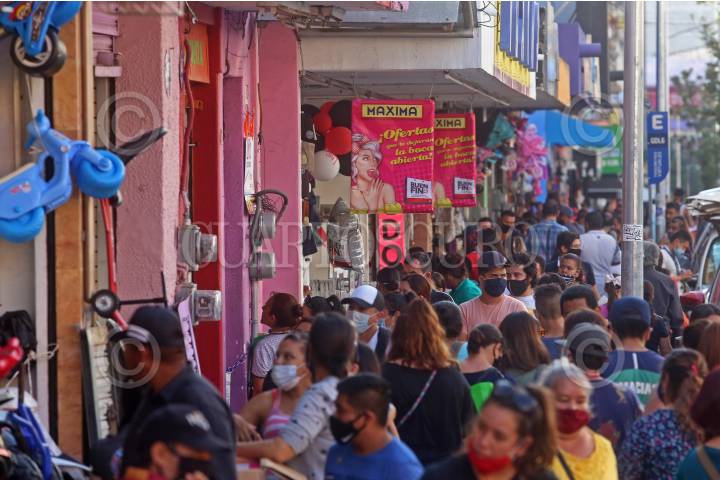 Un grupo de personas caminan por la corredor comercial de la zona de Obregón, esto a tres días de la reactivación económica en Jalisco, después un largo periodo de confinamiento por la pandemia sanitaria del coronavirus (Covid-19).