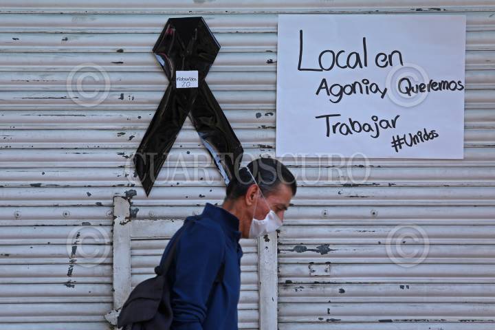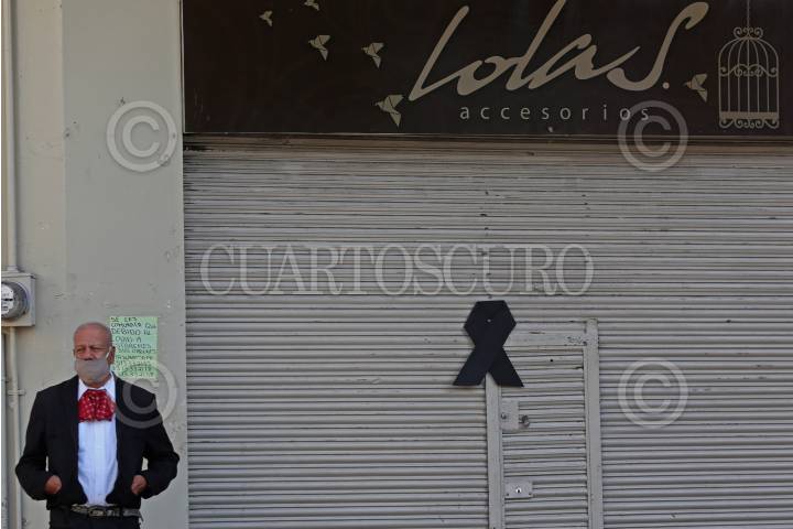 Locatarios del corredor comercial de Obregón, colocaron moños negros afuera de los negocios en alusión a la muerte comercial de algunos, la causa Covid-19.