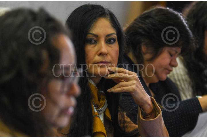 María de la Luz Estrada Directora Ejecutiva bedel Observatorio Ciudadano Nacional del Feminicidio, durante la conferencia con Irinea Buendía mamá de Mariana Lima víctima de feminicidio.