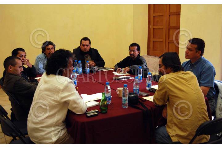 MÉXICO D.F., 02FEBRERO2008.- Reunión en la que se conformó el Circuito Fotográfico Norte–Occidente—Centro, realizada en la Fototeca de Zacatecas, con la participación de los delegados Jorge Camarill de Aguascalientes, Octavio Saldivar Avila de Durango, Flaviano Chave de Guanajuato, Luis Caballo de Jalisco, Lorenzo Armendáriz, Ramón Portales de San Luís Potosí y Pedro Valtierra de Zacatecas. FOTO: CARLOS SEGURA/CUARTOSCURO.COM