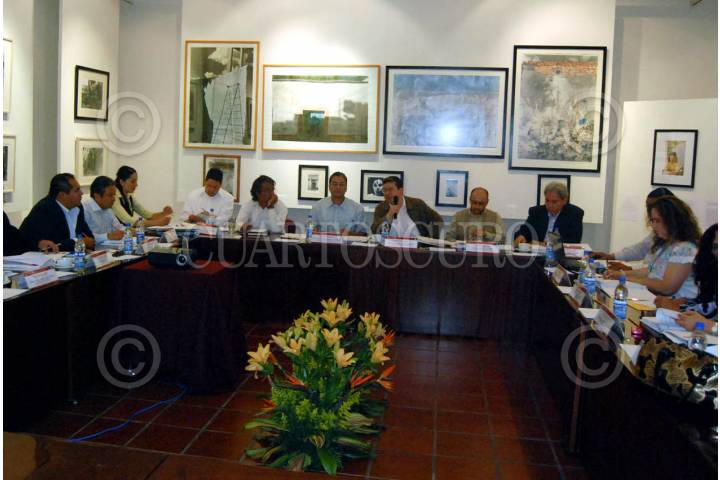 ZACATECAS, ZACATECAS 09, MAYO 2008.- En la Fototeca de Zacatecas ,se realizó la xxviii reunión del fondo regional paa la cultura y las artes de la zona del centro de occidente en la imágen: José Luis Hernández Gutierrez director General de vinculación de CONACULTA, Leonel Maciel Ramírez director de vinculación con estados y municipios del CONACULTA, David Eduardo Rivera Salinas Director del Instituto Zacatecano, Pedro Valtierra Director de la Fototeca, FOTO: CARLOS SEGURA/ CUARTOSCURO.COM