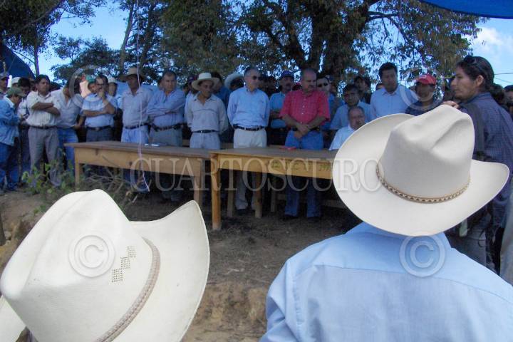 GUERRERO.-10NOVIEMBRE2005.- Reuniòn de Florencio Salazar Adame, Secretario de la reforma agraria con comuneros de Tlacoapa y de la comunidad de El Capulin, quienes mantiene un conflicto agrario con la comunidad de Moyotepec municipio de Ocoapa por la disputa de 546 hectareas. Foto: Oscar Alvarado/CUARTOSCURO.COM