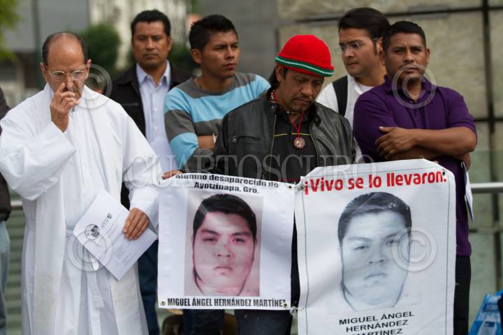MÉXICO, D.F., 26ENERO2015.- El padre Alejandro Solalinde ofició una misa en el monumento Estela de Luz a los 43 normalistas de Ayotzinapa que se encuentran desaparecidos. Esto en el marco de la octava jornada Global por Ayotzinapa. FOTO: IVÁN STEPHENS /CUARTOSCURO.COM