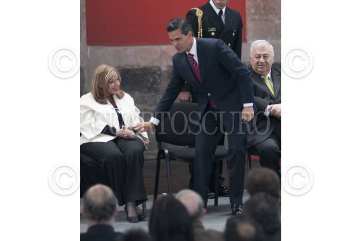 MÉXICO, DF., 31MARZO2014.- Marie Jo Paz, viuda de Octavio Paz; Enrique Peña Nieto, presidente de México; y Emilio Chuayffet; Secretario de Educación Pública; participaron en el homenaje conmemorativo al centenario del natalicio de Octavio Paz en la biblioteca México "José Vasconelos". FOTO: IVÁN STEPHENS /CUARTOSCURO.COM