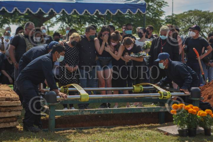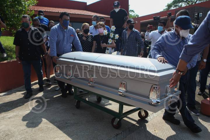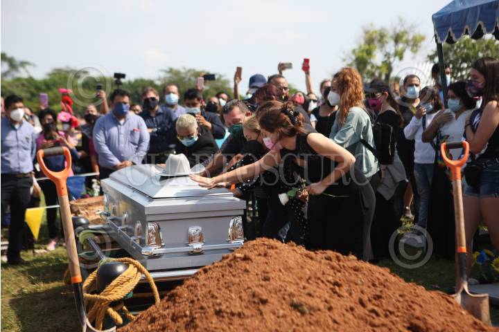 La familia de Octavio Ocaña "Benito Rivers" se despiden del actor durante su sepelio, el actor murió el viernes pasado de un balazo en la cabeza.