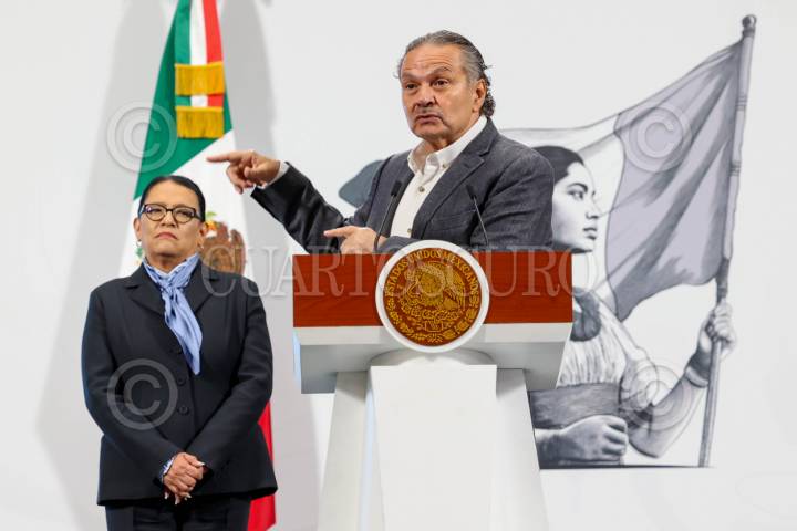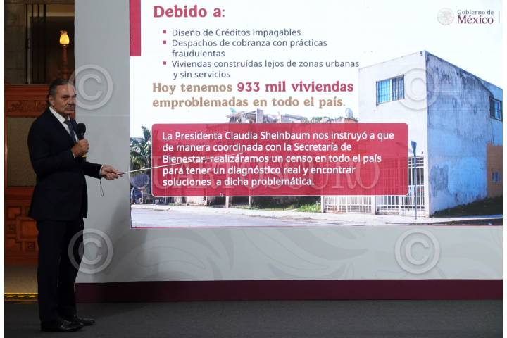 CIUDAD DE MÉXICO, 16JUNIO2025.- Octavio Romero Oropeza, director del Infonavit, habló sobre qué harán con las viviendas que han sido invadidas y las cuales se espera ser regularizadas en el marco del Programa Nacional de Vivienda, durante la Mañanera del Pueblo, que en esta ocasión fue encabezada por la Secretaria de Gobernación, Rosa Icela Rodríguez. FOTO: MOISÉS PABLO/CUARTOSCURO.COM