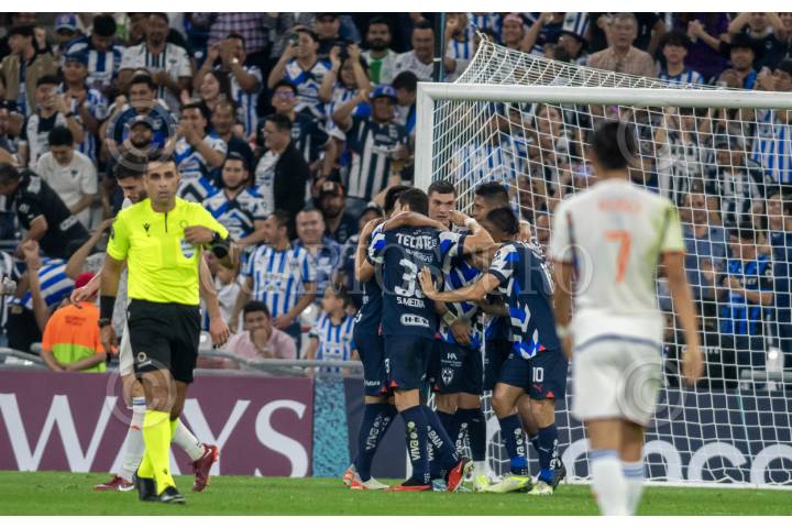 GUADALUPE, NUEVO LEÓN, 14MARZO2024.- Jugadores de los Rayados del Monterrey festejan el gol ante Cincinati FC, en el estadio BBVA., partido correspondiente a la vuelta en octavos de final de la CONCACAF Copa de Campeones 2024 Marcador Global: Monterrey: 3 - Cincinati: 1. FOTO: CUARTOSCURO.COM