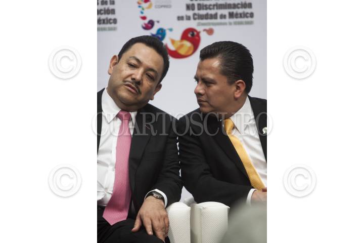 MÉXICO, D.F., 18OCTUBRE2013.- Héctor Serrano, secretario de Gobierno y Manuel Granados Covarrubias, presidente de la comisión de Gobierno de la ALDF, durante la firma del decreto en el que se declara a Octubre como el mes de la No Discriminación en la Ciudad de México, la cita fue en el Antiguo Palacio del Ayuntamiento. FOTO: MOISÉS PABLO /CUARTOSCURO.COM