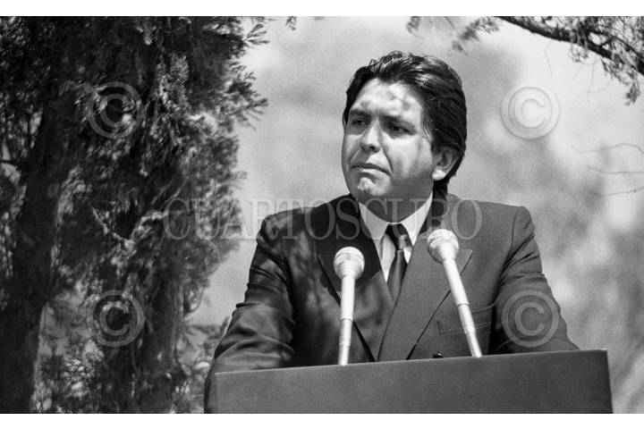 CIUDAD DE MÉXICO, 17ABRIL2019.- El expresidente de Perú, Alan García, falleció hoy tras haberse disparado en la cabeza cuando policías llegaron a su casa para detenerlo como parte de las investigaciones por el caso de corrupción y sobornos de la constructora brasileña Odebrecht. El actual mandatario de Perú, Martín Vizcarra, confirmó el deceso. En la imagen, Alan García durante su visita a México, el 23 de marzo de 1987. FOTO: ARCHIVO/ PEDRO VALTIERRA /CUARTOSCURO.COM