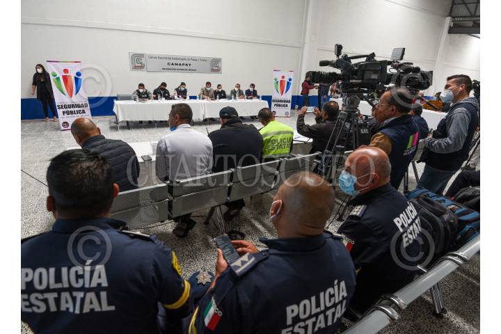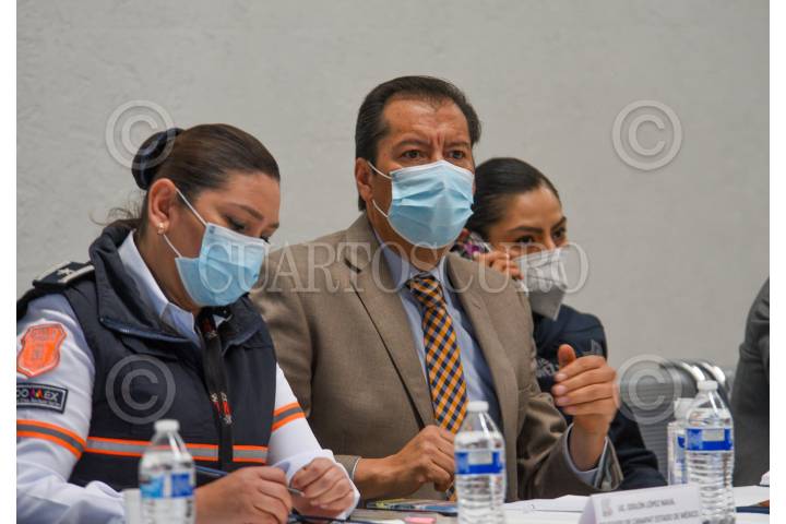 Reunión de Seguridad de CANAPAT encabezada por el delegado Odilón López Nava, en donde se trató el tema de extorsiones a 29 líneas de transporte del Valle de Toluca.