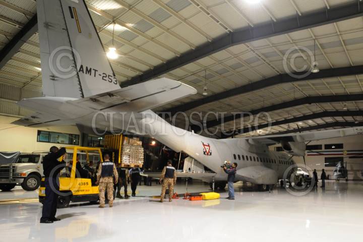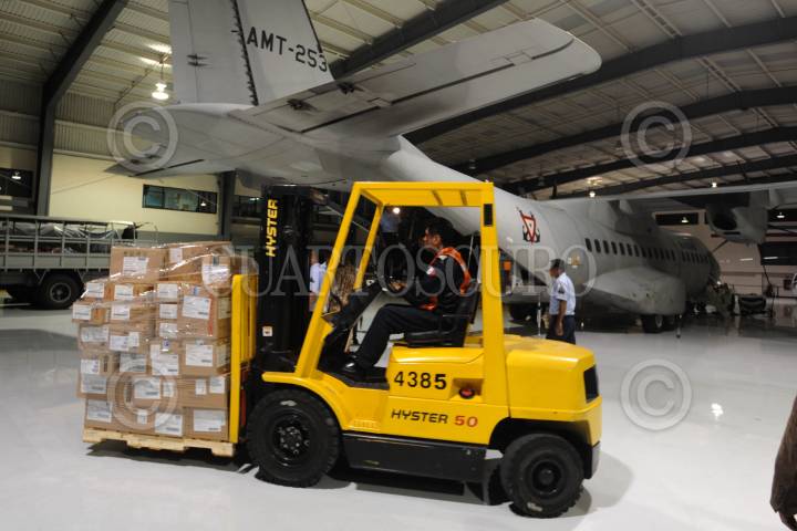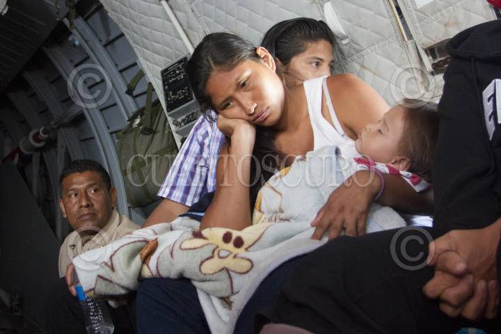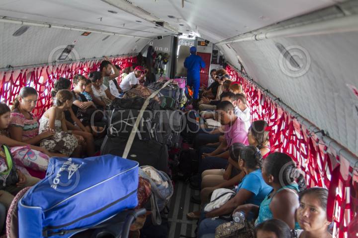 MÉXICO D.F., 19SEPTIEMBRE2014.- Personas afectadas por el huracán Odile que impacto la zona de Baja California, son traídas a la ciudad de México por personal de Marina, en las aeronaves que están formando el puente aéreo entre este lugar y el Distrito Federal. Ya que, indicaron, temen por su seguridad ante los fuertes saqueos que se están registrando en la zona, Turistas locales y extranjeros también son trasladados en estos vuelos. Así mismo, estos aviones regresan a l lugar del desastre, con cientos de toneladas de víveres y medicamentos para ayudar a las personas en los estados de afectación por el meteoro. FOTO: LUIS CARBAYO /CUARTOSCURO.COM