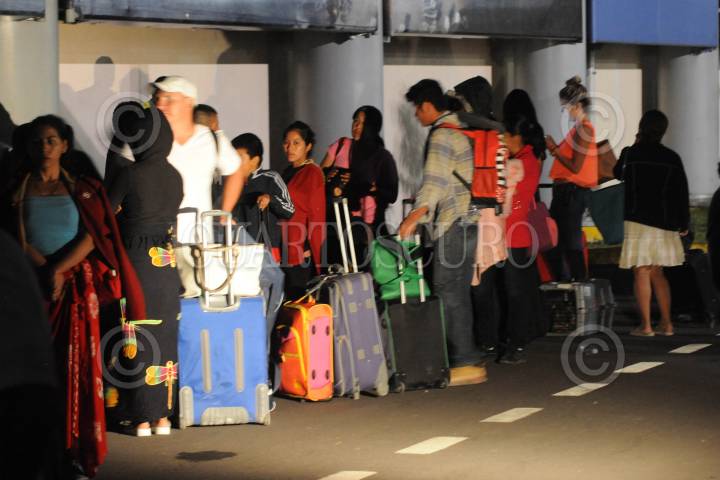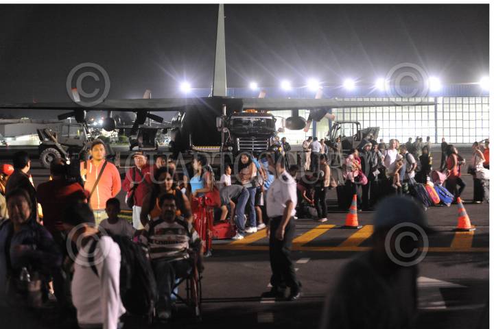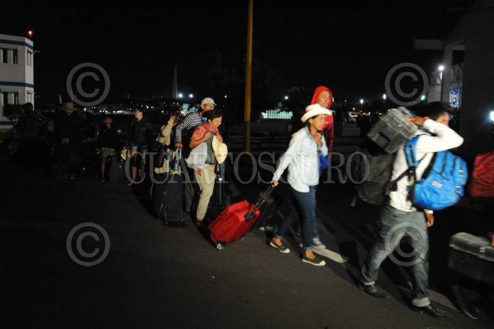 LOS CABOS, BAJA CALIFORNIA SUR, 21SEPTIEMBRE2014.- Damnificados por el paso de huracán Odile, son trasladados al Aeropuerto de Internacional de la Ciudad de México. FOTO: GUILLERMO PEREA /CUARTOSCURO.COM