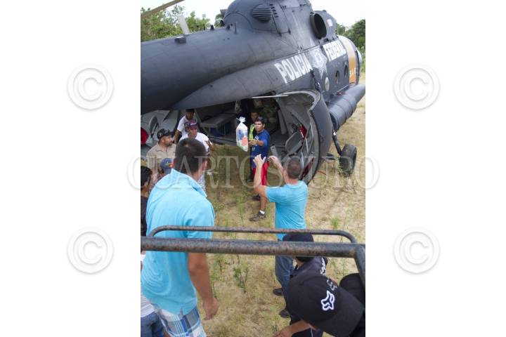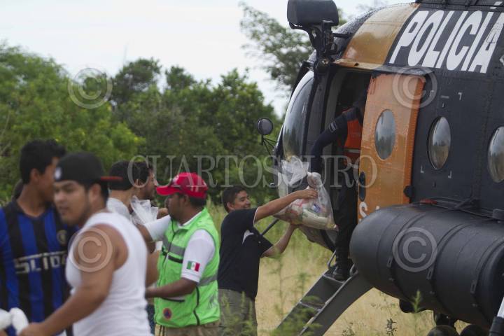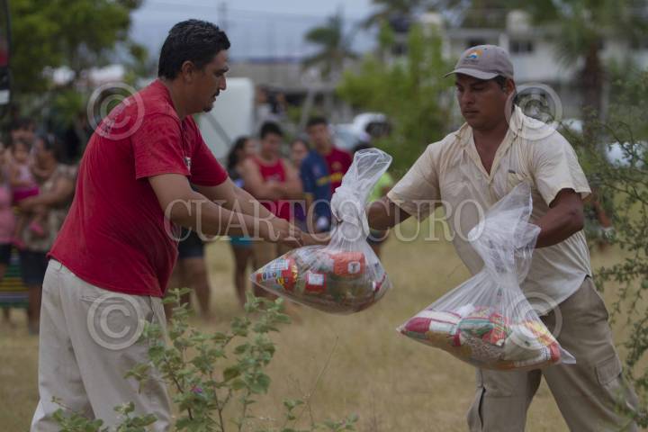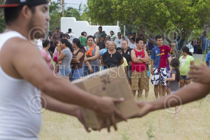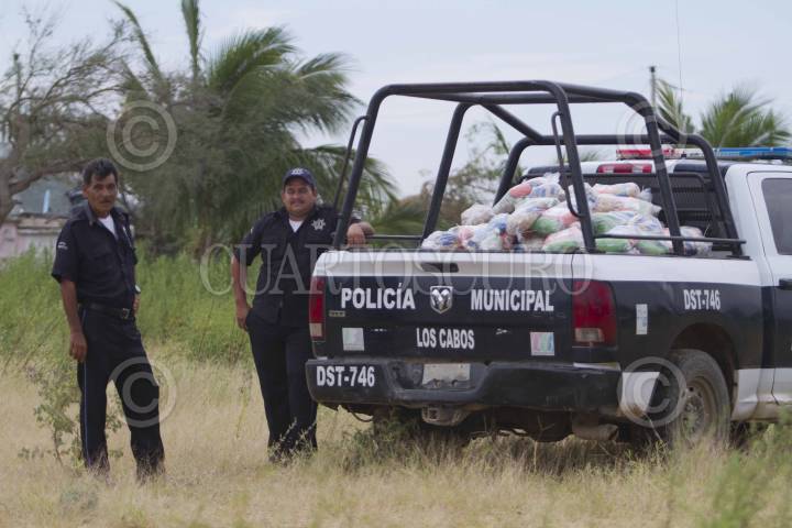 LOS CABOS, BAJA CALIFORNIA SUR 19SEPTIMBRE2014.- Elementos de la Policía Federal acudieron a la comunidad de "La Rivera" para entregar despensas a los pobladores ya que es una de las zonas afectadas tras el paso del huracán Odile. FOTO: GUILLERMO PEREA /CUARTOSCURO.COM