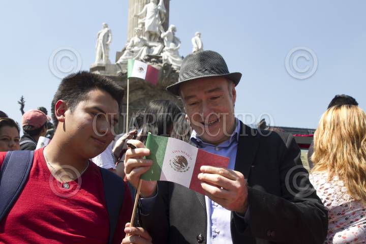 CIUDAD DE MÉXICO, 27FEBRERO2017.- El actor Odiseo Bichir firma autógrafos en las escalinatas del Ángel de la Independencia, en donde el elenco de la obra de teatro "La Dama de Negro" develó una placa por los 23 años de la puesta en México. FOTO: MOISÉS PABLO /CUARTOSCURO.COM