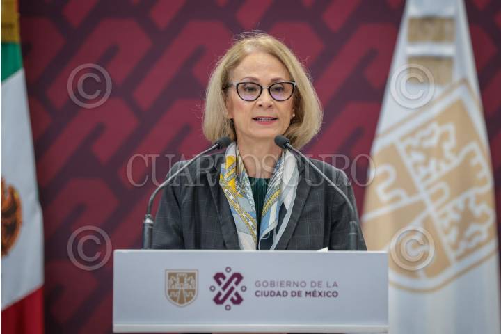Ofelia Angulo, secretaria de Educación de la Ciudad de México, durante conferencia de prensa en la que se ofrecieron detalles sobre el operativo que se realizará con motivo del arranque del ciclo escolar 2023-2024.