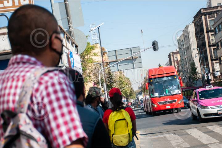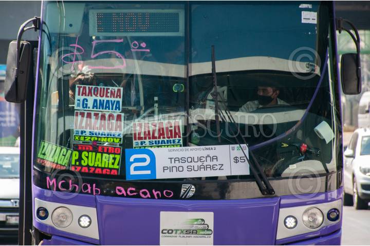 Unidades de Metrobús salen de Metro Pino Suárez con dirección a Tasqueña de la Línea 2 del Metro , esto como apoyo a los usuarios.