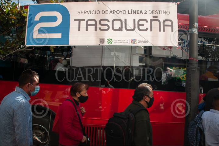 Un camión del Metrobús fue implementado para ayudar a los pasajeros del Metro que no pueden utilizar la Línea 2.