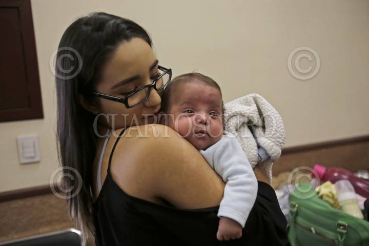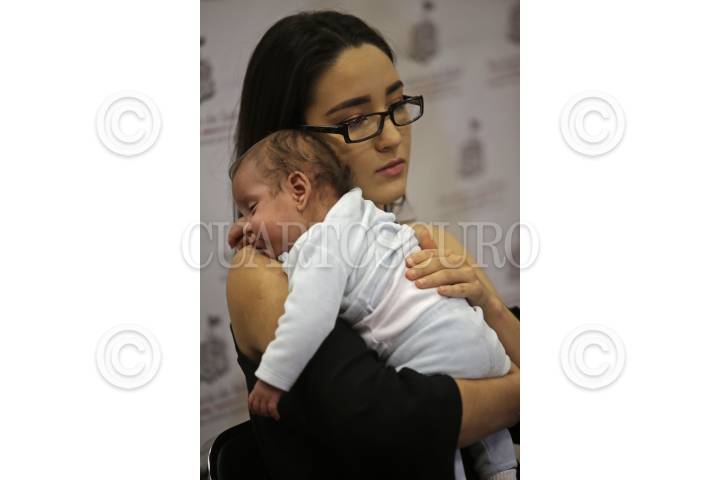 GUADALAJARA, JALISCO, 16FEBRERO2017.- En las instalaciones de la Secretaría de Salud estatal presentaron a Leonardo, un pequeño que nació de 24 semanas, lo que equivale a cinco meses de gestación, pesando 700 gramos, el pequeño presentó diversos problemas al momento de nacer, como; hemorragia en la cabeza, problemas en los ojos y pulmones, y una hernia inguinal. Las autoridades destacaron que el infante actualmente su estado de salud es bueno y que no tiene secuelas de los padecimientos que lo aquejaban. La madre Monse, una joven de 17 años, señalo que este embarazo no fue planeado ya que su método anticonceptivo fallo, pero que actualmente esta muy feliz de que “Leo” haya superado el inicio adverso. FOTO: FERNANDO CARRANZA GARCÍA /CUARTOSCURO.COM