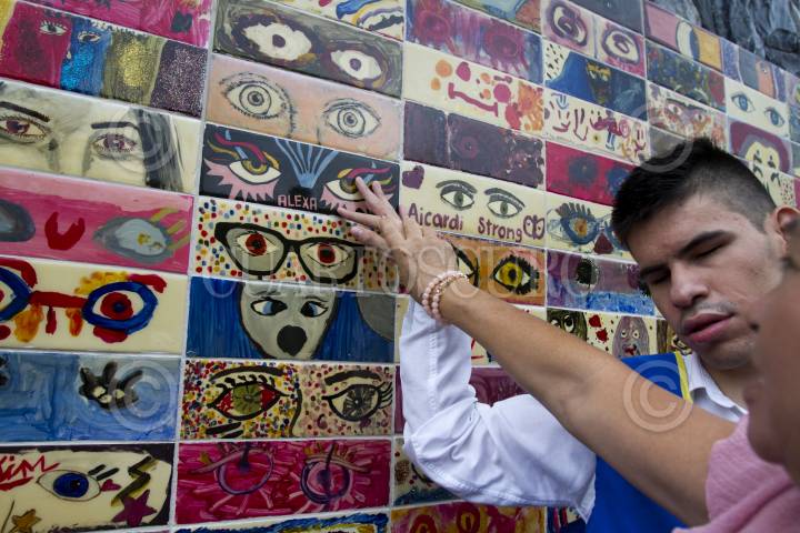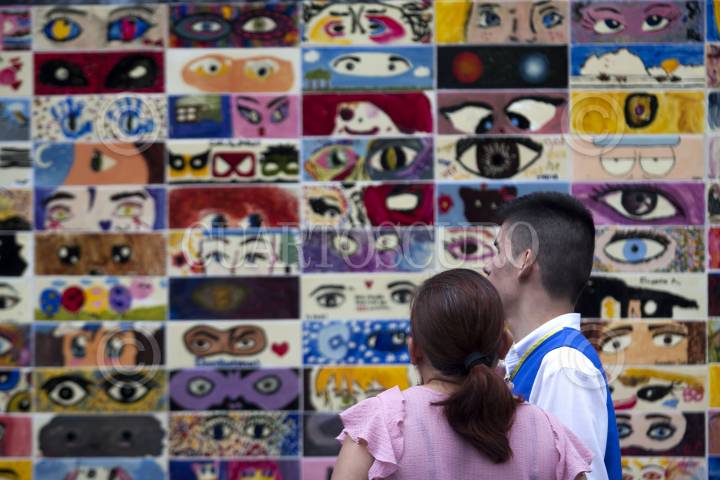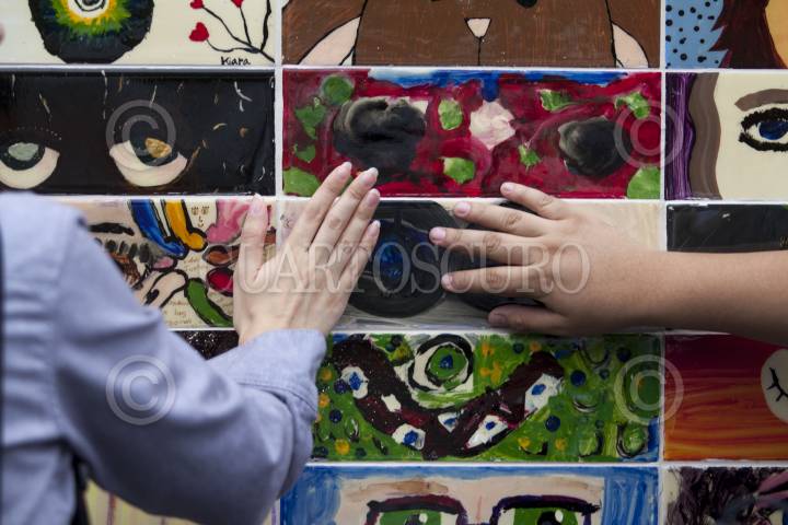 SAN PEDRO, NUEVO LEÓN, 27SEPTIEMBRE2017.- Más de 500 azulejos fueron pintados por niños y adultos, en los cuales se dibujaron ojos realizando así un mural para a asociasión Destellos de Luz logrando recaudar fondos para cirujías a débiles visuales y prevenir la ceguera. Cada imagen forma parte del mural, el cual será un paisaje permanetne del Planetario Alfa. FOTO: GABRIELA PÉREZ MONTIEL /CUARTOSCURO.COM
