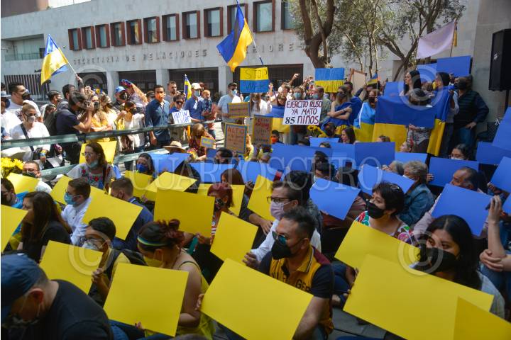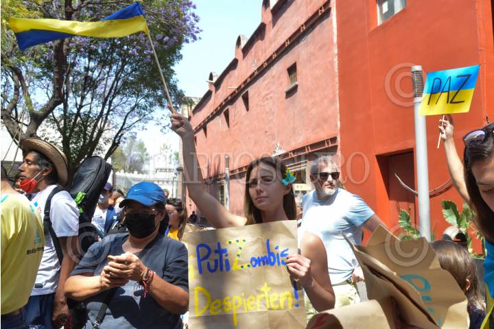 Ciudadanos ucranianos se manifestaron en contra de la invasión rusa a su nación, en el Museo Franz Mayer.