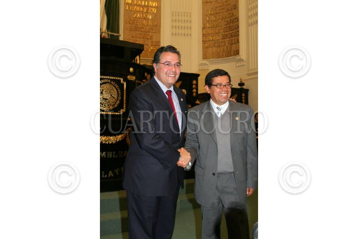 MÉXICO, D.F. 14MARZO2007.- Martín Olavarrieta, nuevo presidente de la mesa directiva en la Asamblea de Representantes del Distrito Federal saluda a Victor Hugo Círigo. FOTO: PAOLA HIDALGO/CUARTOSCURO.COM