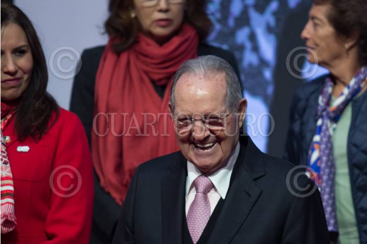 CIUDAD DE MÉXICO, 28MARZO2025.- El empresario mexicano y ex deportista Olímpico, Olegario Vázquez Raña, falleció esta mañana a la edad de 89 años. En la imagen, el empresario y miembro honorario del Comité Olímpico Internacional (COI) durante el anuncio de actividades con motivo del 50 aniversario de los Juegos Olímpicos de México 68 en enero de 2018. FOTO: GALO CAÑAS/CUARTOSCURO.COM