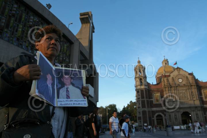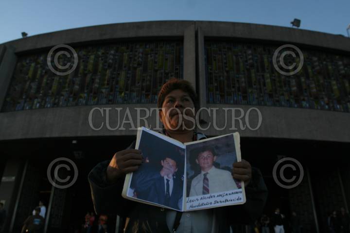 MÉXICO, D.F., 07NOVIEMBRE2010.- Olga Lidia Navarro, muestra en las afueras de la Basílica de Guadalupe, las fotos de su hijo Lenis Alades Mejia Navarro quién desde hace mucho tiempo no saben de su paradero cuando salio de su natal Honduras en busca de una mejor vida: el día lunes partira junto con la Caravana Búsqueda de indocumentados, a la ciudad de Guadalajara donde se realizara la reunión Internacional de Migrantes. FOTO: ENRIQUE ORDÓÑEZ/CUARTOSCURO.COM